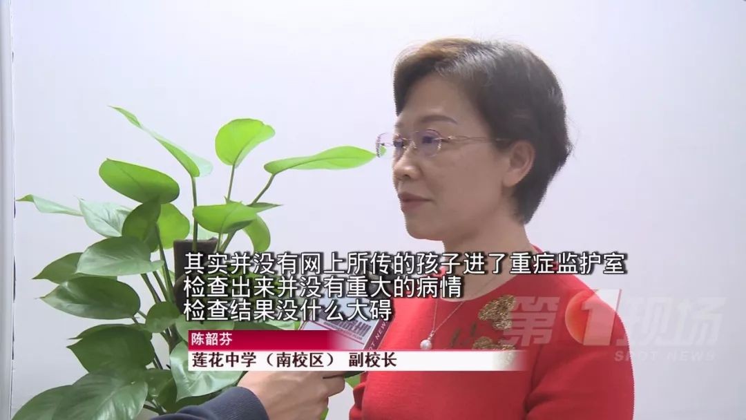 莲花中学(南校区) 副校长陈韶芬表示,被打学生并没有如网上所传“进了重症监护室”,实际情况是到医院检查后发现并无大碍,已顺利出院,目前已恢复正常上课。