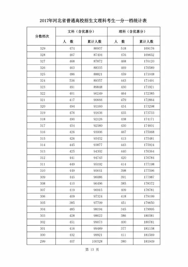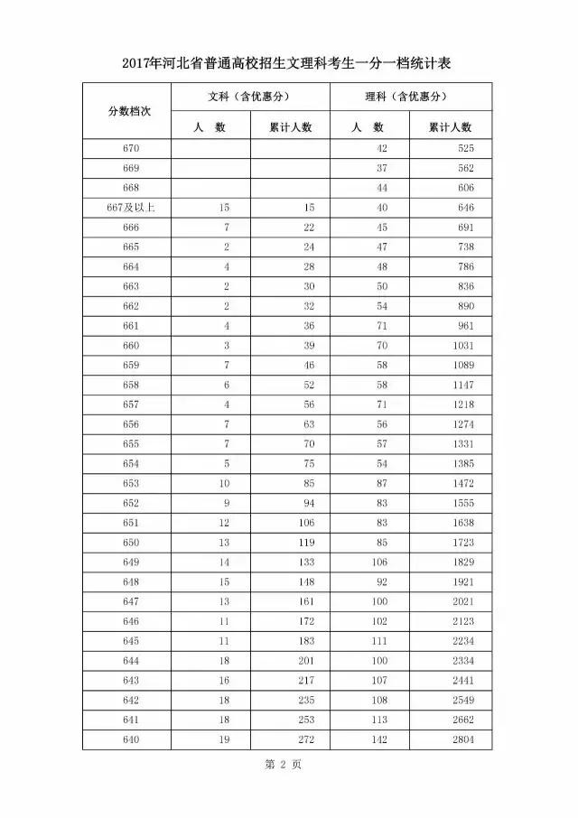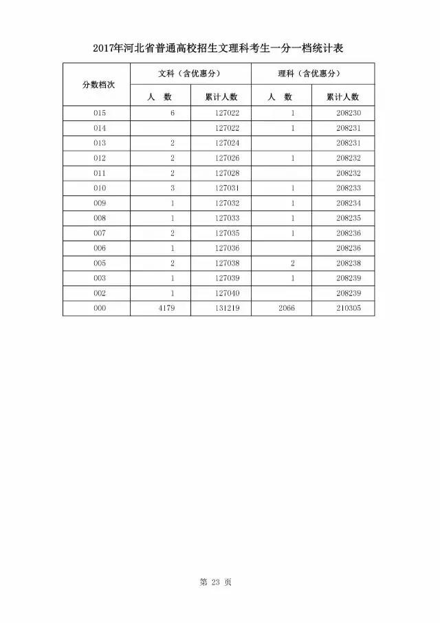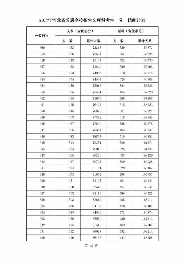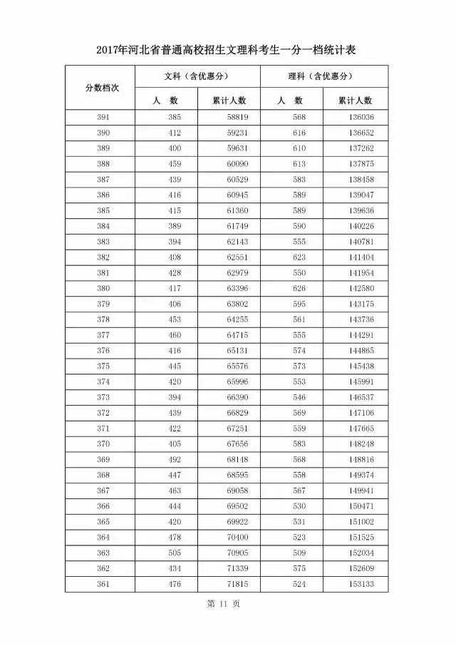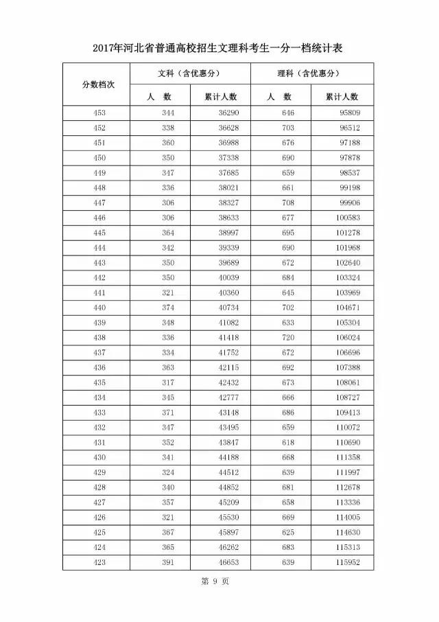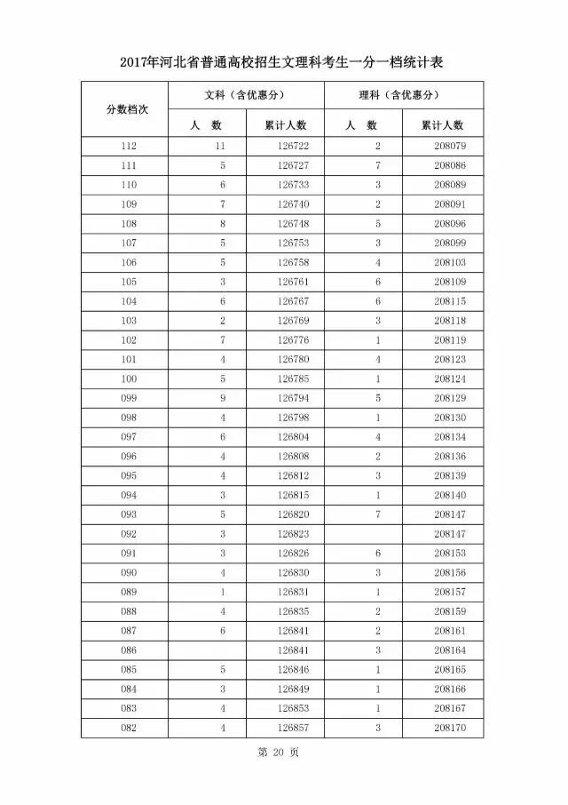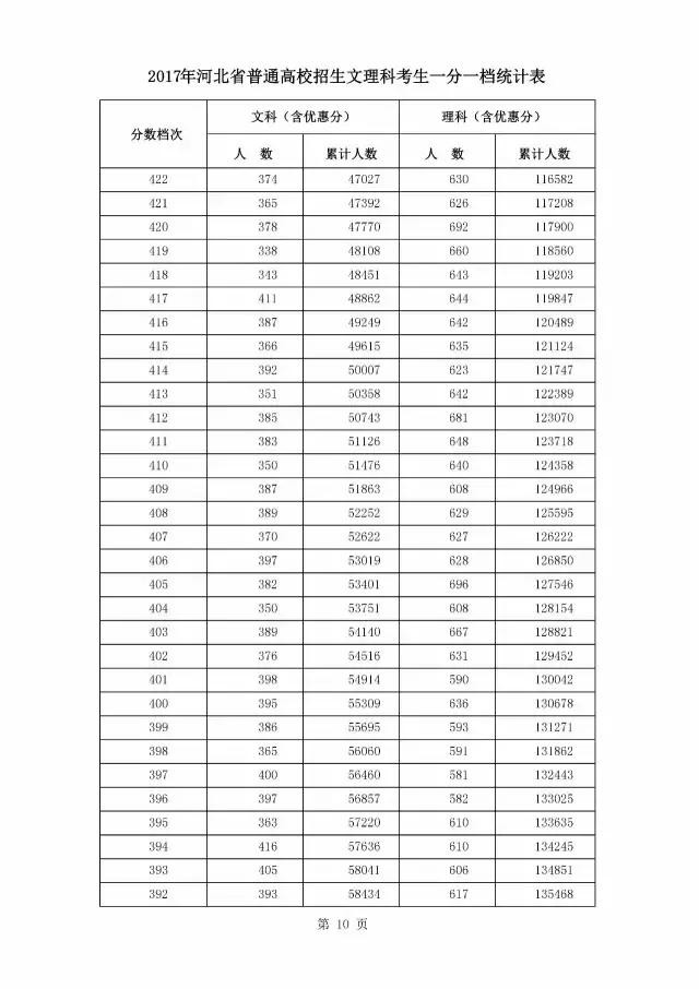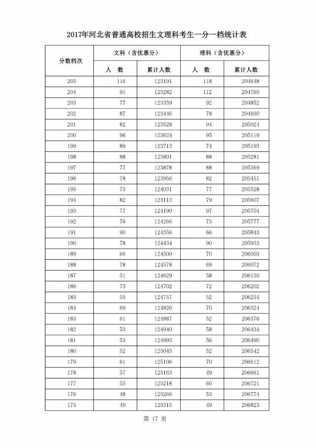 最新!燕赵都市报记者获悉,2017年河北省普通高校招生文理科考生一分一档统计表公布啦!请往下看!