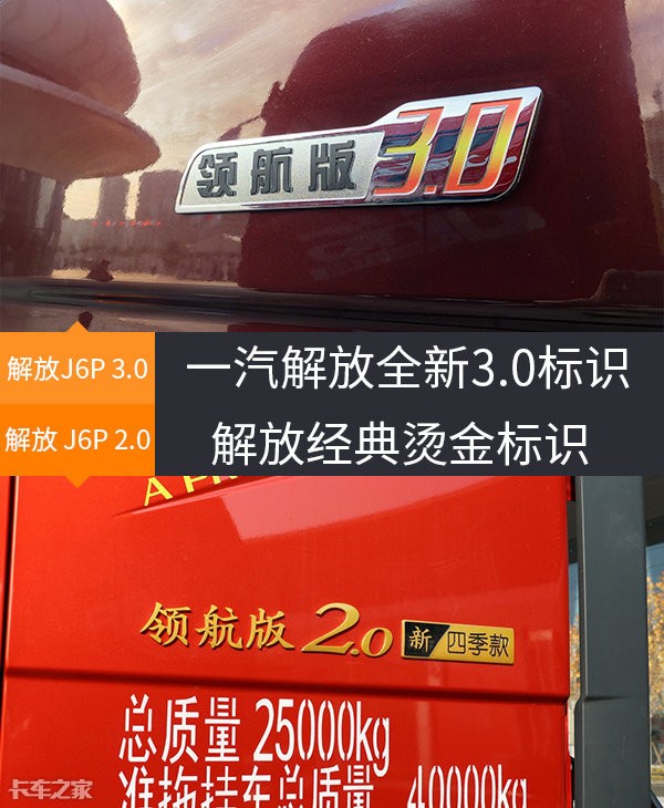 另外在车身拉花下面,相比现款车型的烫金楷书状车型版本标识,新款解放J6P车型采用了更为小巧精致的车型版本标识,“领航版 3.0”字样精简直白,与解放JH6车型的设计非常类似,两种设计样式卡友们更喜欢哪一款呢?