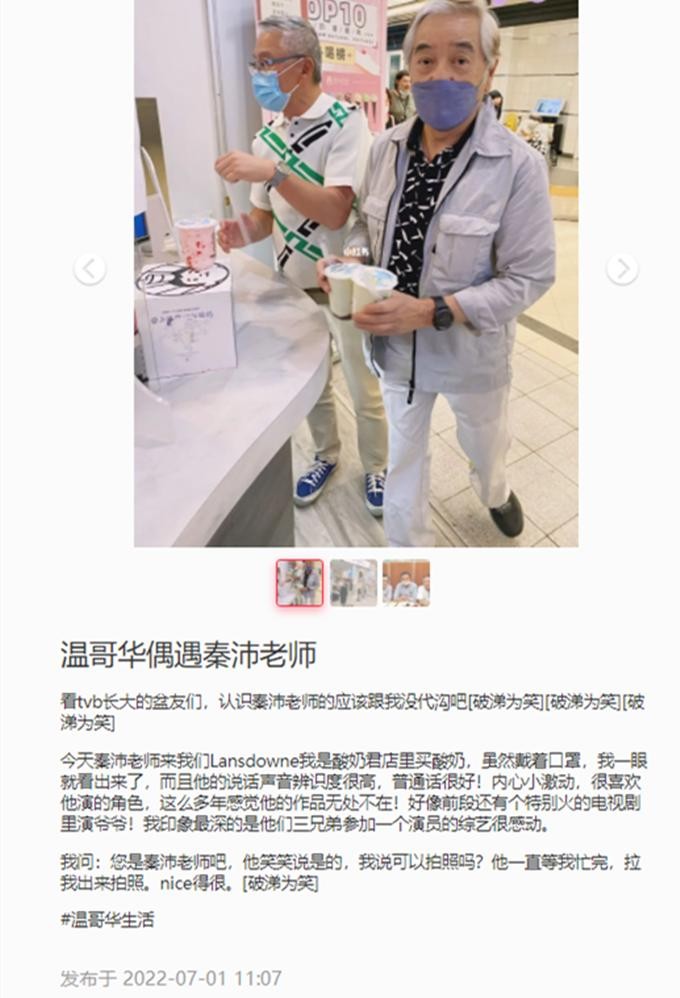 据网友透露,尽管秦沛戴了口罩,但他一眼就认出来。他还大赞秦沛说话声音辨识度高,普通话很好。