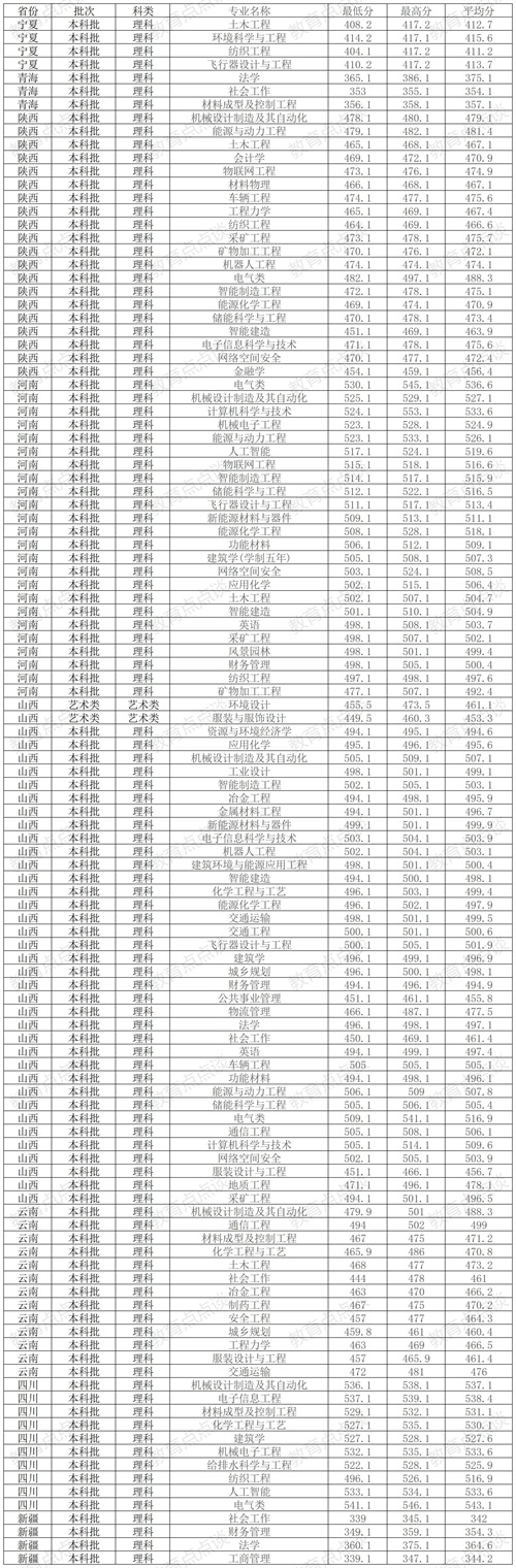 四、内蒙古工业大学2024年在传统高考省份各专业录取分数线