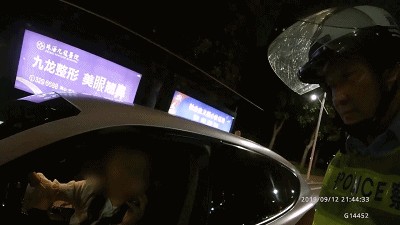 晚上9点半,拱北交警梁警官驾驶摩托车来到前河东路中公交站附近,远远地看到路旁停着一辆粉色保时捷帕拉梅拉轿跑。由于是违停,再加上粉红色车身,交警忍不住多看了几眼。