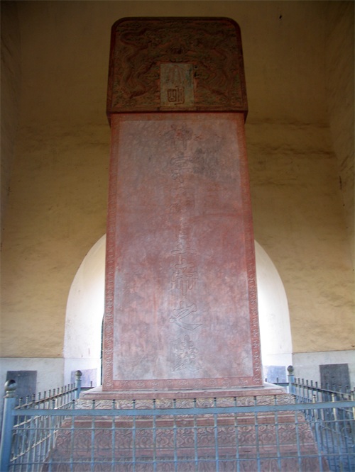 明楼内圣号碑,额篆书“大明”二字,碑身刻“神宗显皇帝之陵”