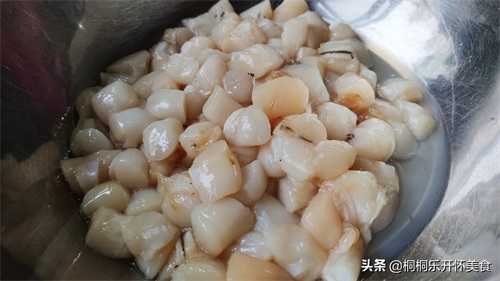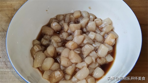 在腌扇贝柱的时候已经加盐了,所有再炒的时候不需要在加盐了