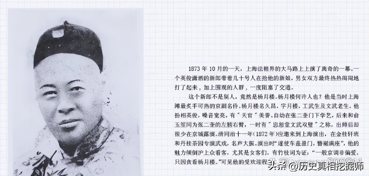 杨月楼是清末当红京剧武生,1872年到上海献艺,与看戏的广东富商千金韦阿宝恋爱,两人关系亲密已经到了谈婚论嫁的程度。但大清律例明言规定地位卑贱的人跟地位高的人不可以通婚,杨月楼唱戏卖艺,属于贱籍身份,不允许与韦阿宝结婚,但是互相深爱的两人无视律例的规定,私下依照正常程序结婚,甚至依照上海“抢婚”的风俗,以期避开韦阿宝家人的干扰。