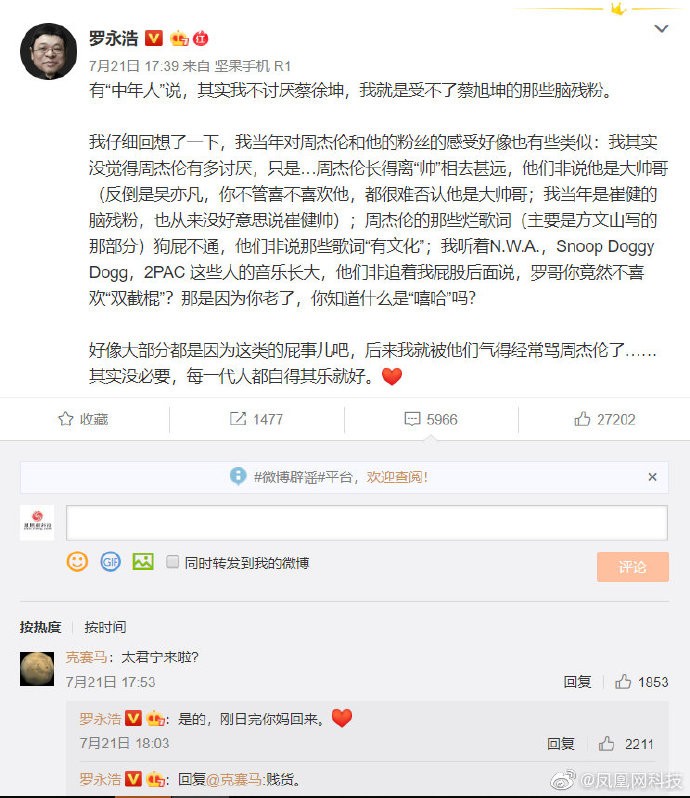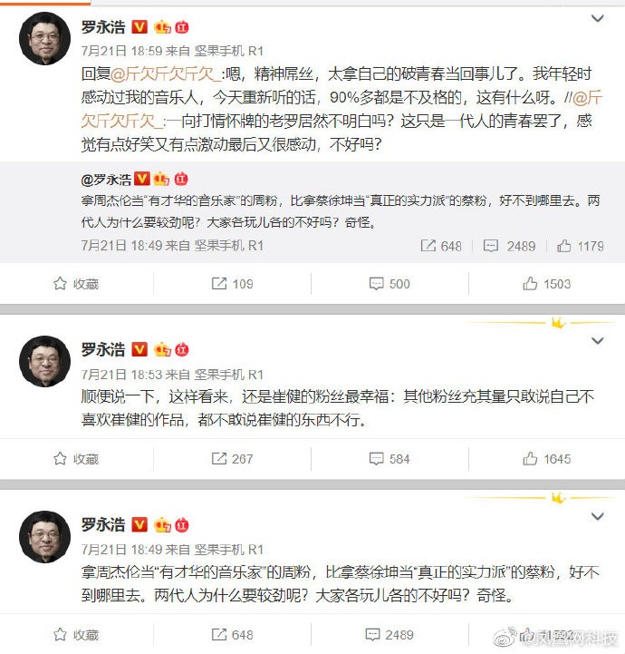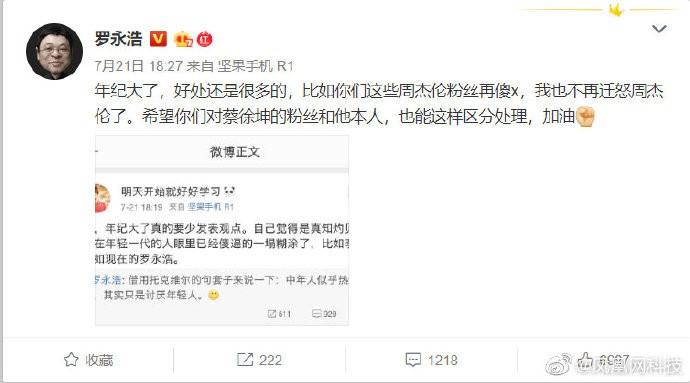 周杰伦超话第一成为首位超话破一亿的艺人 罗永浩吐槽周杰伦烂歌词狗屁不通