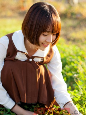 甜美呆萌的韩式短发棕色头发图片,加入深棕色染发的波波头更能映衬出白嫩肤色,搭配内蓬的短发设计最显脸小,很有减龄效果的时尚短发。