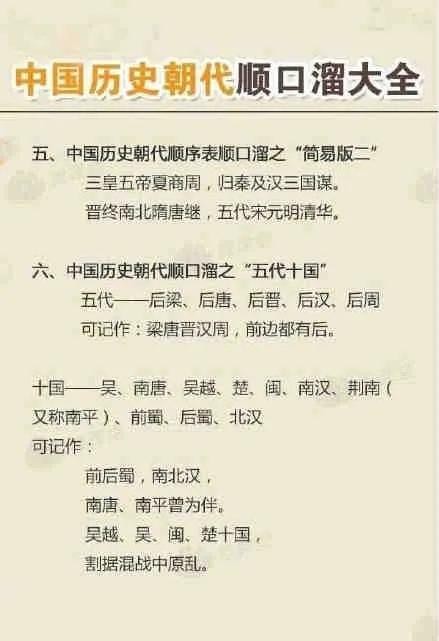 「顺口溜」中国历史朝代顺口溜大全,上下五千年尽在你的脑海中