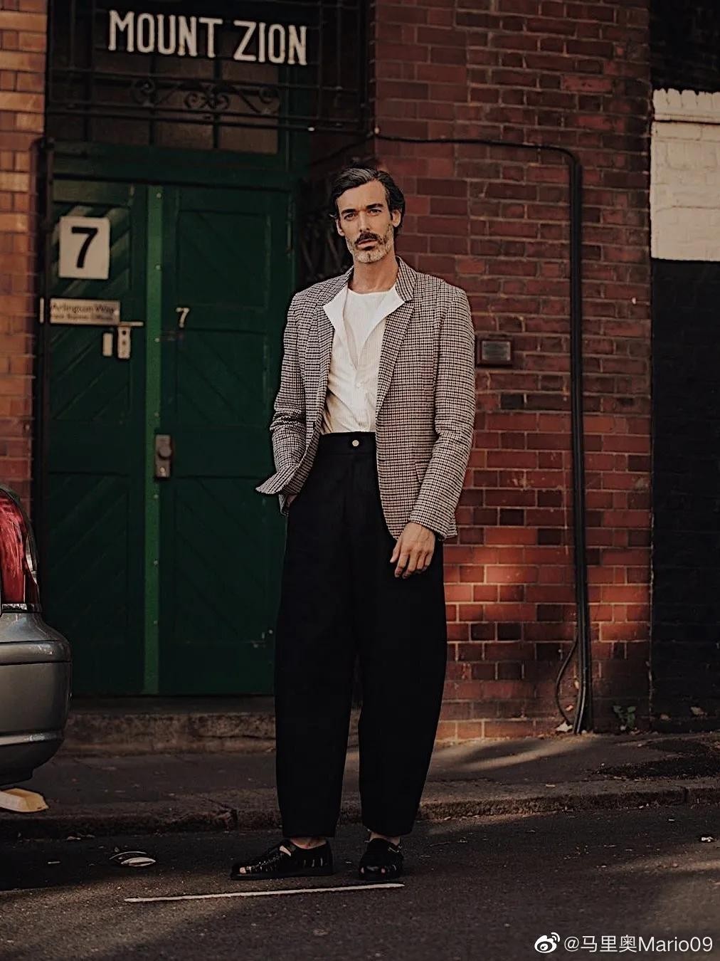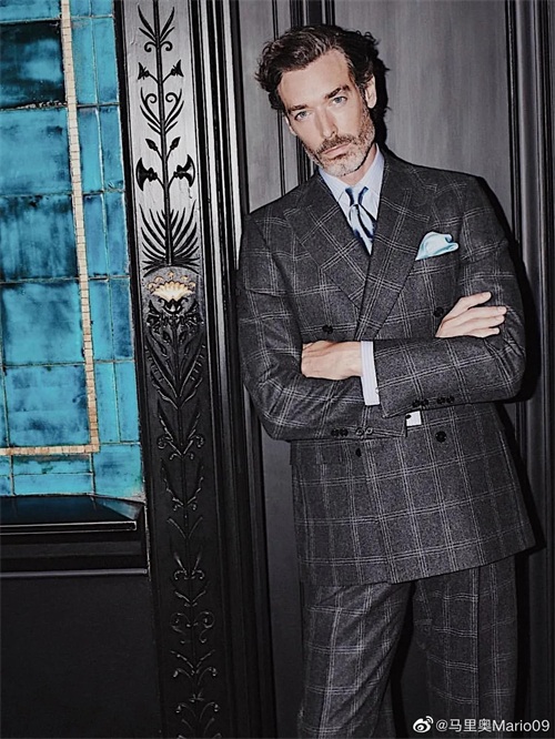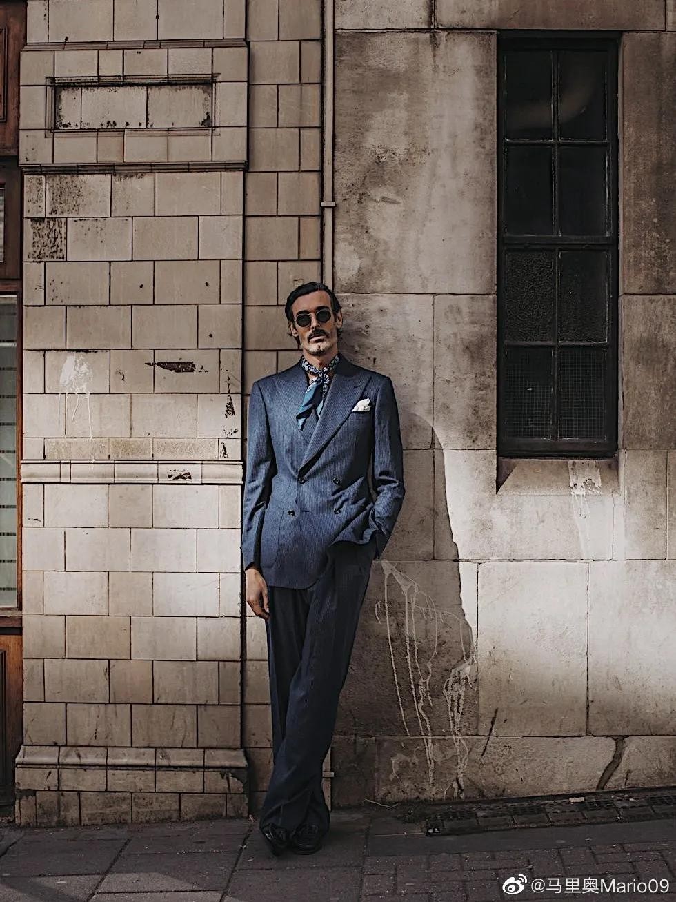 英国男模,身高一米八八。湛蓝的眼睛,灰白的胡须,慵懒的卷发西装下,西装下若隐若现的刺青。
