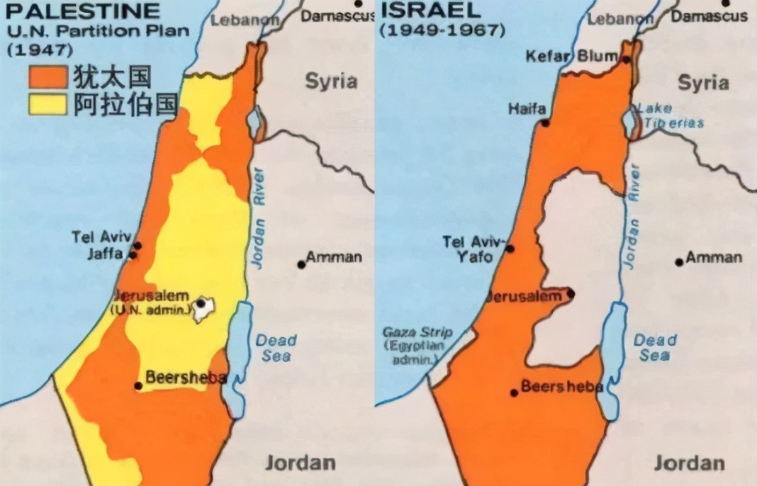 以色列实控领土的变化,可从以下四张图看明白