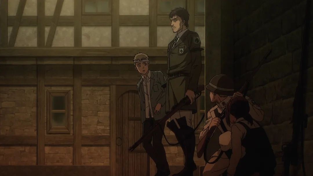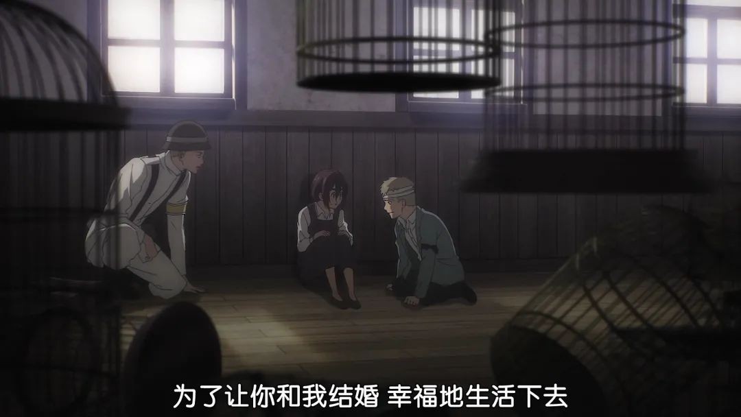 法尔克三人躲了起来,法尔克趁机向贾碧告白,自己是不想让贾碧继承铠之巨人才成为战士候补的,想要和贾碧幸福的一起生活下去。小老弟是个人才。