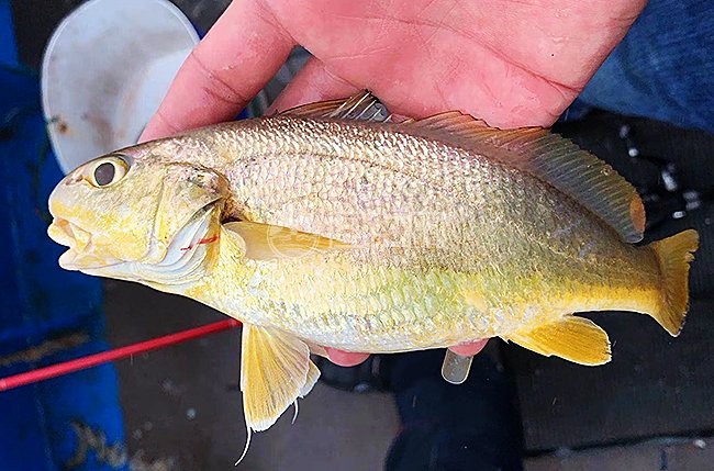 3.船钓。黄昏乘船出海,到水深不到10米处,用上、下两只单钩,挂上大沙蚕作饵,将钓饵投到海底,如遇上黄姑鱼群是会大有收获的。