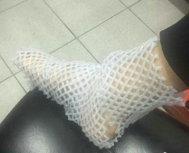 这是网友po出一张袜子坏掉的照片。小编告诉你,直接打个结继续穿吧,哈哈哈!