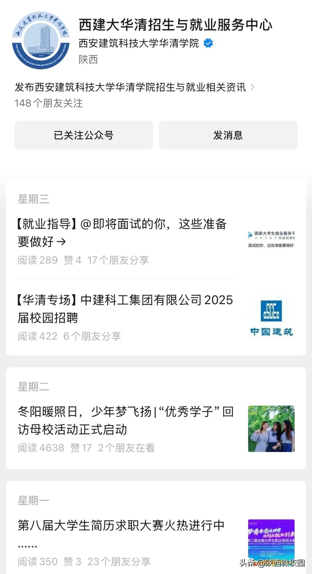 为契合数字化时代信息传播的高效性与便捷性要求,更好地服务于广大考生及家长,10月22日,招生与就业服务中心正式创建并启用了全新的公众号。此公众号旨在构建一个权威、专业且便捷的信息交流平台,全方位助力考生及家长及时、准确地掌握学校招生和就业工作动态。大家可以关注“西建大华清招生与就业服务中心”公众号,借助这一数字化平台,与学校保持密切沟通,共同开启便捷、高效的招生和就业信息获取之旅。