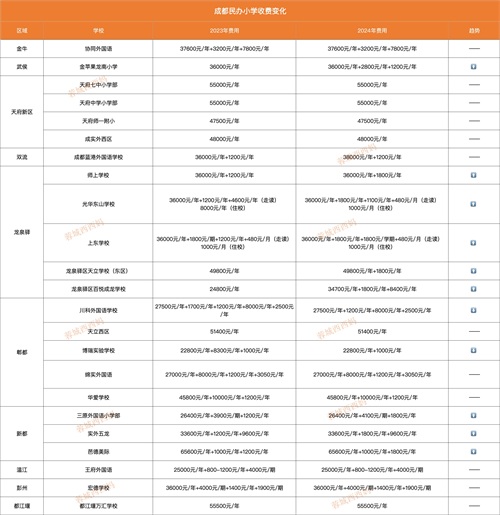 23-24年民办小学收费变化