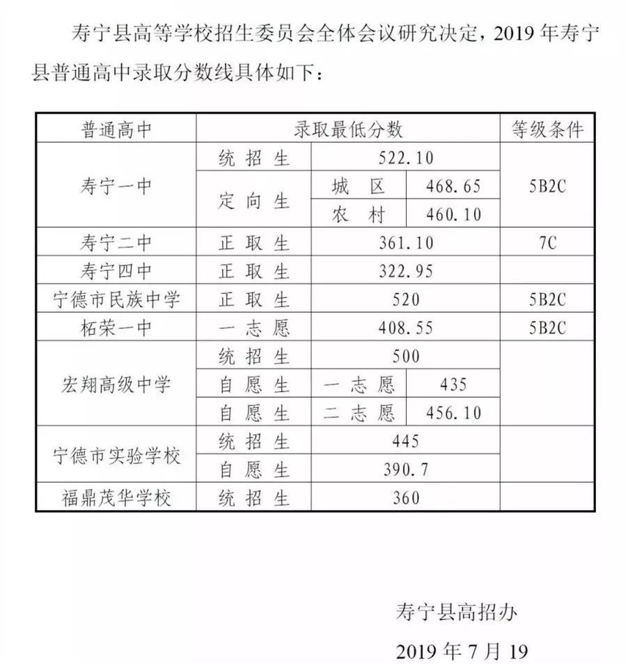 最新!蕉城、寿宁、福鼎、霞浦、福安普高各批次录取最低控制线公布