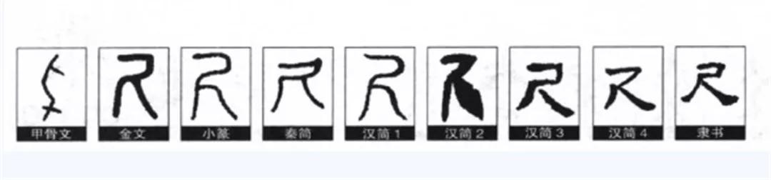 尺是长度单位。我们应联想得到,对长度的测量,古人大多以人体上某个特征长度为单位,比如寸字多以手腕寸口处前后宽度为标准,寻则以张开双手后双手指尖间的距离为标准。那么尺字的标准是什么,能从尺字上看出来点儿什么吗?