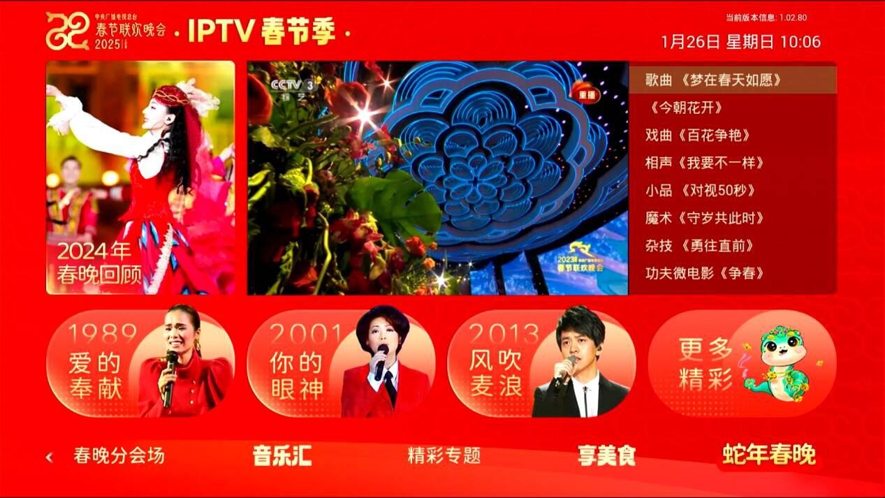 春节前,山东联通超清正式上线“2025 央视春晚专区”,为用户带来丰富的春节视听盛宴。专区涵盖2025年春节联欢晚会内容及1983年至2024年的历届央视春晚,并实时跟进春晚热点,及时更新晚会内容,整合娱乐版块汇集央视文化精品,展示“泛春晚”多元化内容。此外,专区内还包含家庭影剧院、精彩专题聚焦、非遗中国年等优质内容,为广大用户呈上一道春节视听盛宴。