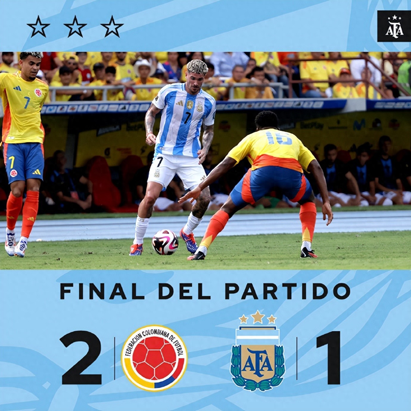 在足球的广阔舞台上,每一场比赛都是对球员意志、技术与战术的极致考验。世预赛南美区第8轮,哥伦比亚2比1阿根廷的这场对决,无疑是令人意外的一战,赛后阿根廷8轮积18分,取得6胜2负的战绩,打进12球,丢4球,战绩也有一些不尽如人意,因为对阵哥伦比亚正常发挥的话是可以小胜的。