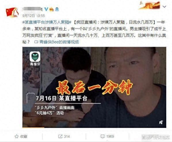 没想到,时隔不久,339户外再上新闻,9月12日,多家官媒和大v先后发帖批评339直播间“涉嫌违规!”这次339被点名并且用上了万人聚赌的名义,并且曝光直播间存在疯狂的“打赏”行为,称该主播在直播间进行“6元办卡抽5万”活动,并且其在直播间疯狂乱喊“一张办卡,一个五万,一张办卡一个五万带回家”等口号,呼吁直播间的粉丝们为其“办卡”抽奖,一天几十万,上百万流水。