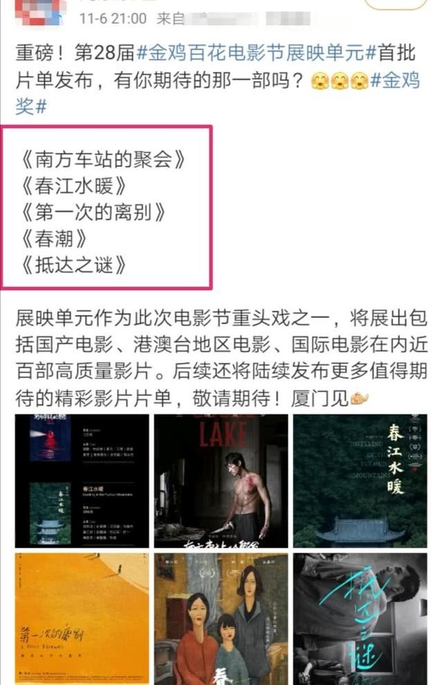 【金鸡百花奖首批片单曝光】