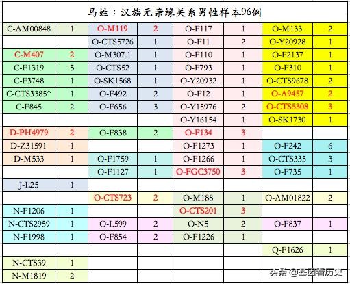 注:标红加粗的单倍群为在马姓中较为富集的单倍群(一般为总人群平均水平的2倍左右及以上)