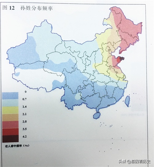 孙姓中有几个明显富集的支系,在孙姓中的比例与全国总人群中的比例的比值如下: