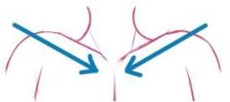 根据锁骨和肩部连接的结构,可以看到锁骨的角度通过升高和降低肩部而改变。如果你锐化肩膀并抬起它,锁骨的V形线的角度就会像这样陡峭。