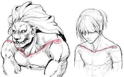 画肩膀周围的时候要考虑锁骨和肩膀是连接着的。