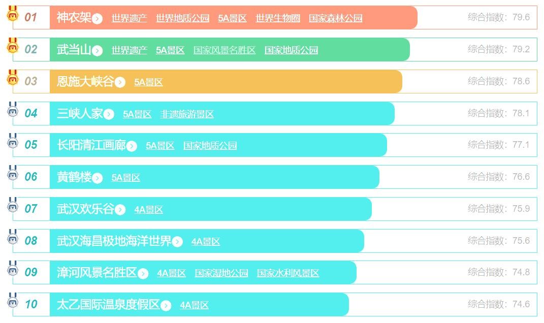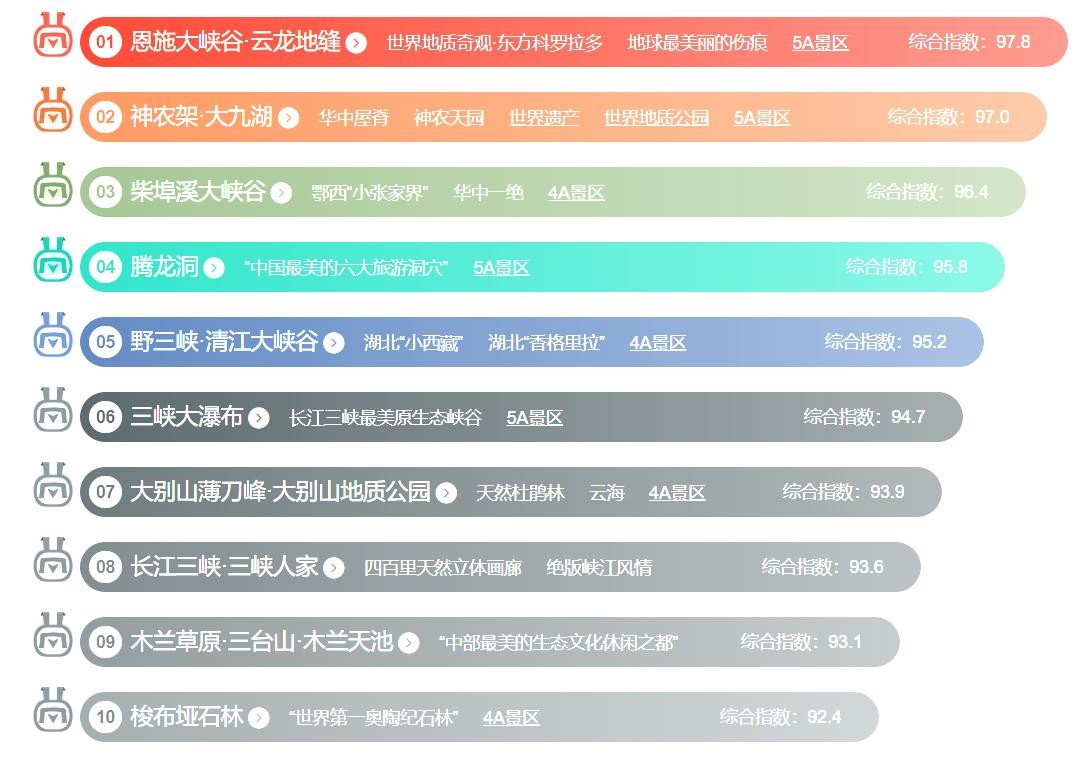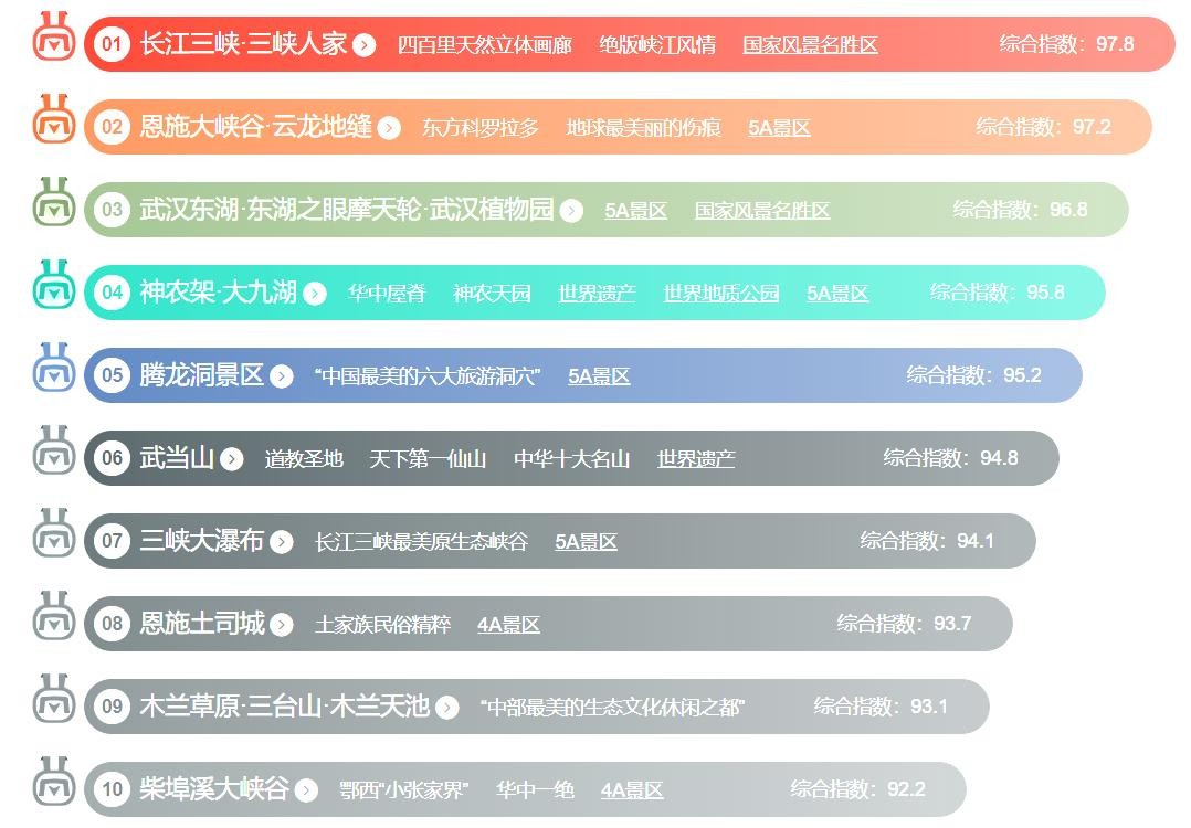 湖北省十大最美景点排行