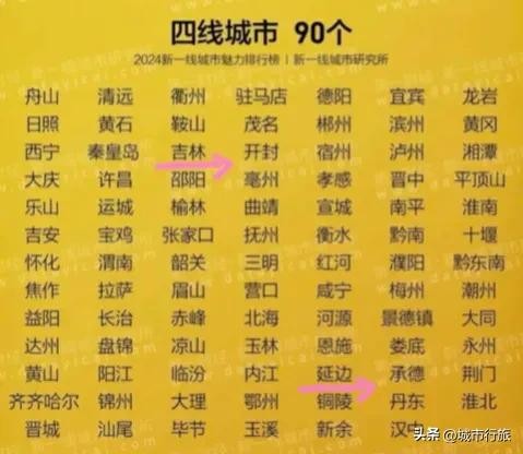 入选四线城市的有两座城市,分别是排名十七名的吉林,排名七十五名的延边。