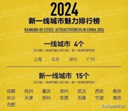 全国十五座,从高到低依次是成都、杭州、重庆、苏州、武汉、西安、南京、长沙、天津、郑州、东莞、无锡、宁波、青岛、合肥。根据表单可以看出,吉林暂无新一线城市。