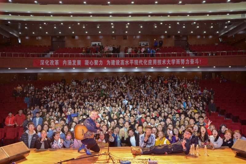 10月19日17:30,养正讲堂星光点点、乐声环绕,“大冰的小屋﹒百城百校音乐会”公益演出在我院顺利举行,大冰书里的主人公王继阳、谣牙子等人纷纷从书中走出来,分享大冰书里书外和民谣背后的故事,带领在场近千名慕名而来的读者、观众走进冰书、民谣的世界。
