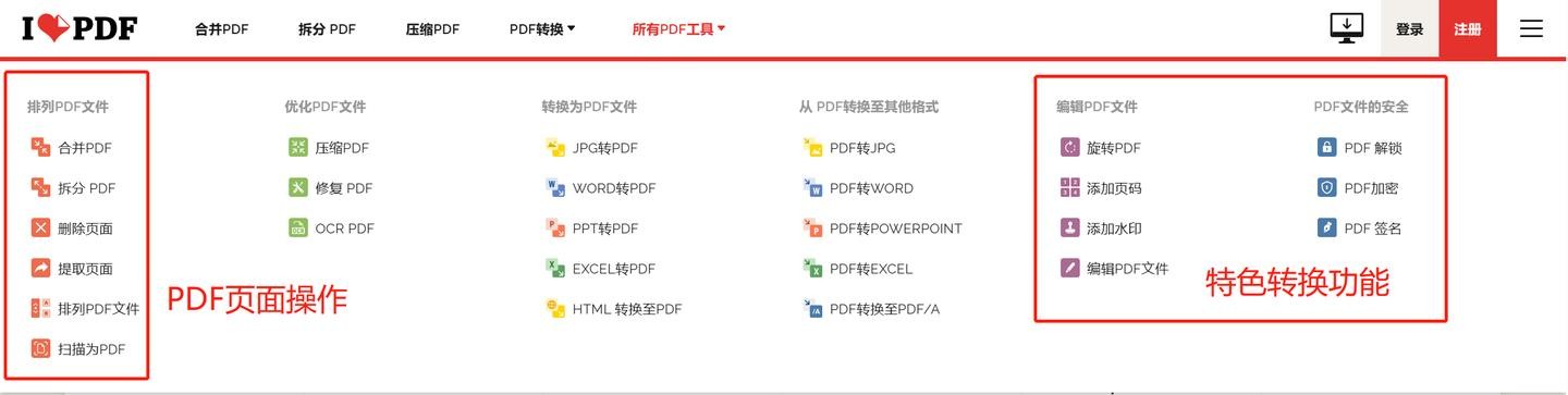 iLovePDF-面向PDF爱好者的在线PDF工具,它是一款免费的在线网站转换,无需用户注册。该软件提供了加入PDF、拆分PDF、压缩PDF、Word转PDF、PPT转PDF、Excel转PDF、PDF转JPG、添加水印PDF排序等多达十数种PDF处理功能。