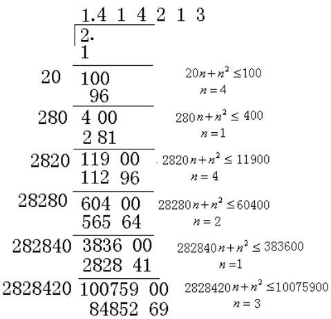竖式计算开方的优点是准确,通过这个方法得到的每一位都是准确值,缺点嘛……实在太慢了,即使丢掉