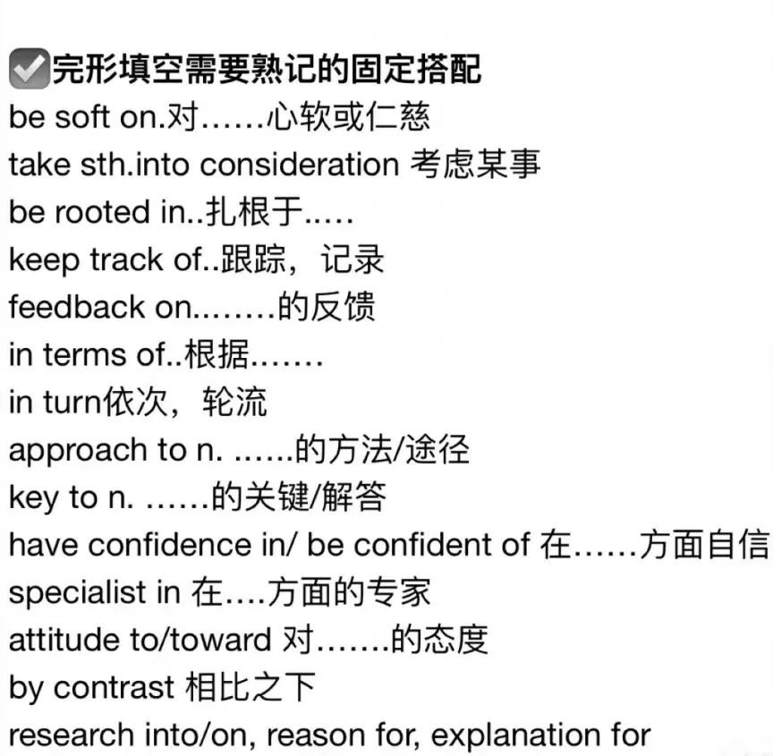 更多的完型固定搭配: