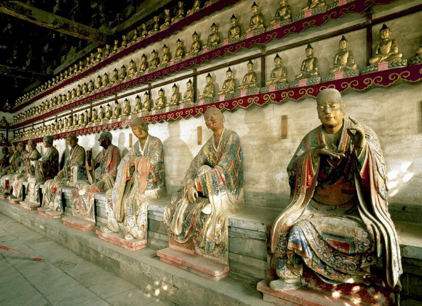 蓮花甬道一側,还有一株有着千年樹齡的古銀杏樹吸引着游客的目光,不仅是它的枝繁葉茂,而是樹身上的“千瘡百孔”。原來,這些疮孔是少林僧人長年累月練習大力金剛指和一指禪功時形成的。往后走依序是天王殿、大雄寶殿、法堂、方丈室、立雪亭和千佛殿。