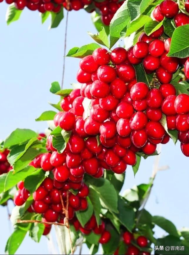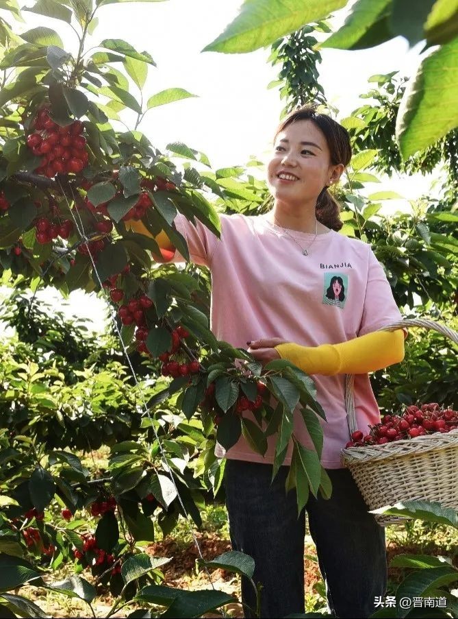 得益于独特的山区小气候和土壤含硒量全省最高的优势,绛县大樱桃色泽光亮,皮薄多汁,每一颗都是肉嘟嘟的非常饱满。