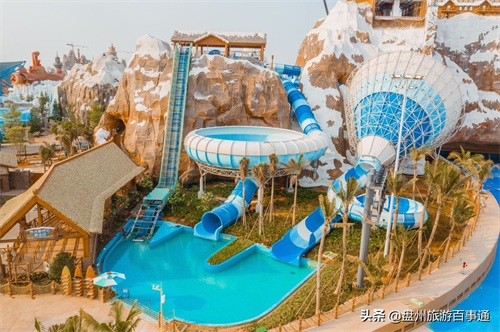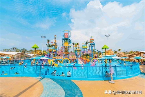 缤纷多彩的人体滑道和戏水小品、从天而降的巨大翻斗桶,在漫天水花中尽情惊声尖叫
