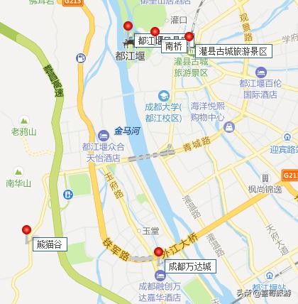 交通路线:熊猫谷 -环山路-鑫玉大道-青城山大道-成都万达城。全长4.9公里,车程11分钟。