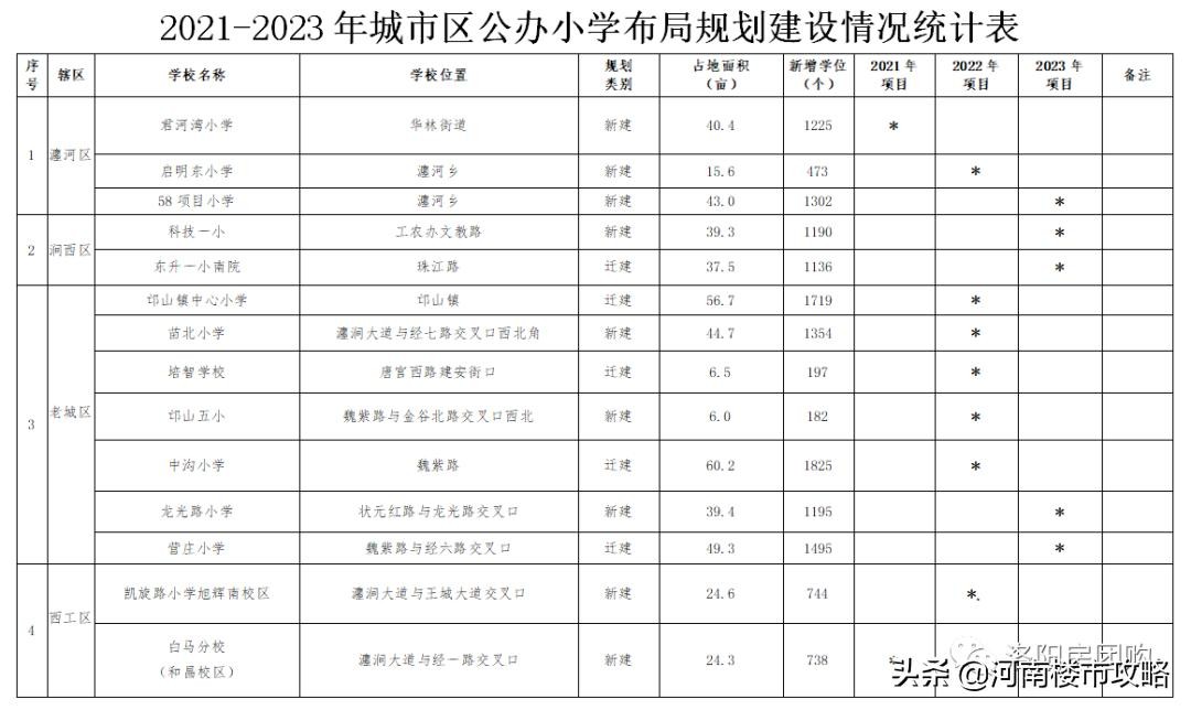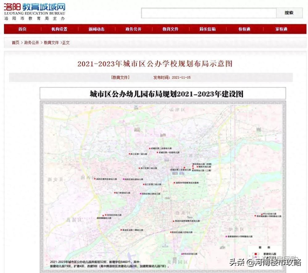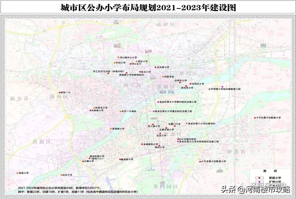 前天,洛阳市教育局主办的洛阳教育城域网公布了“2021-2023年城市区公办学校规划布局示意图”。