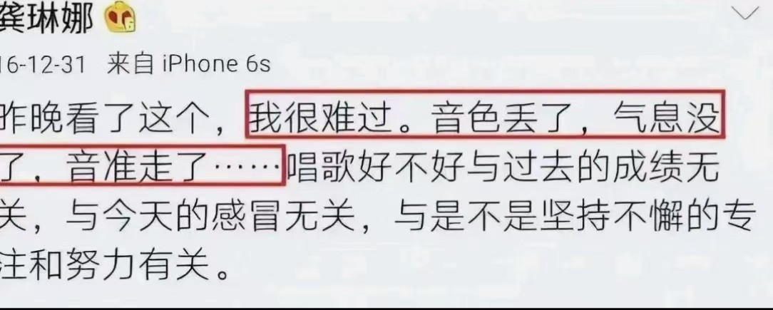就连龚琳娜也吐槽到,“昨晚看了这个,我很难过,音色丢了,气息没了,音准走了,唱歌好不好,与过去的成绩无关,与今天的感冒无关,与是不是坚持不懈的专注与努力有关。
