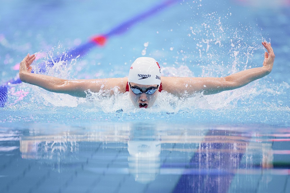 第三棒是蝶泳,由张雨霏接棒,张雨霏刚刚结束了自己的自由泳晋级赛,转过身来又投入到混合泳当中,其中消耗的体力不言而喻。