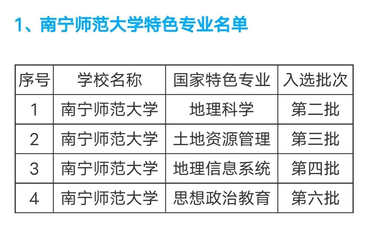 南宁师范大学国家特色专业有4个,分别是地理科学、土地资源管理、地理信息系统、思想政治教育。