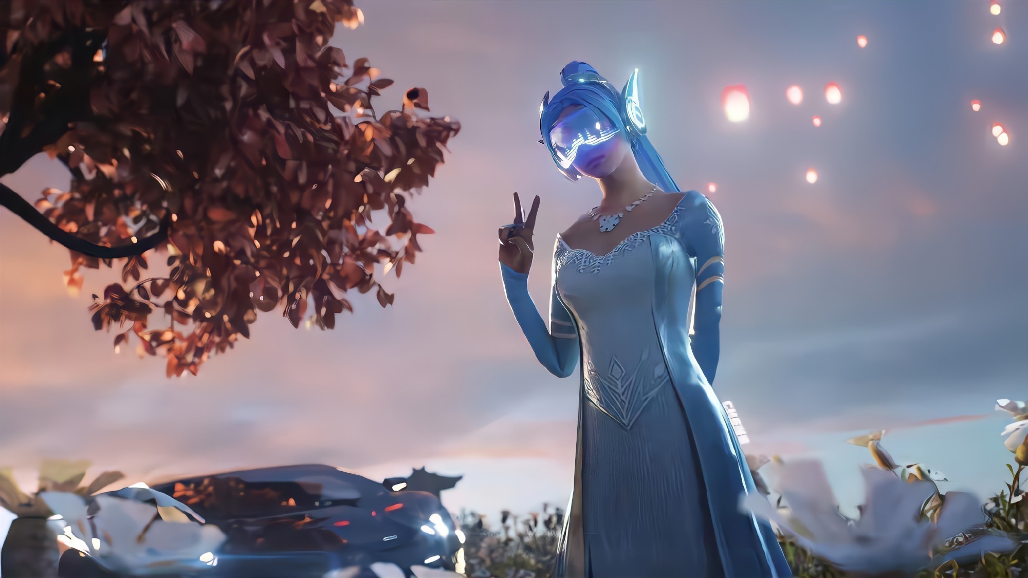 而这段时间,玩家之间突然流传出一个系列的壁纸,基本上都是穿着各种套装的游戏角色,比着“耶”的手势,背景也是十分的梦幻,看上去超级唯美。