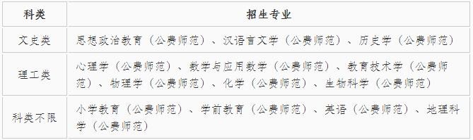 为了发展农村教育,培养优秀农村师资,学校2020年高校专项计划招生面向公费师范专业,招生计划为80人,具体招生专业见下表。