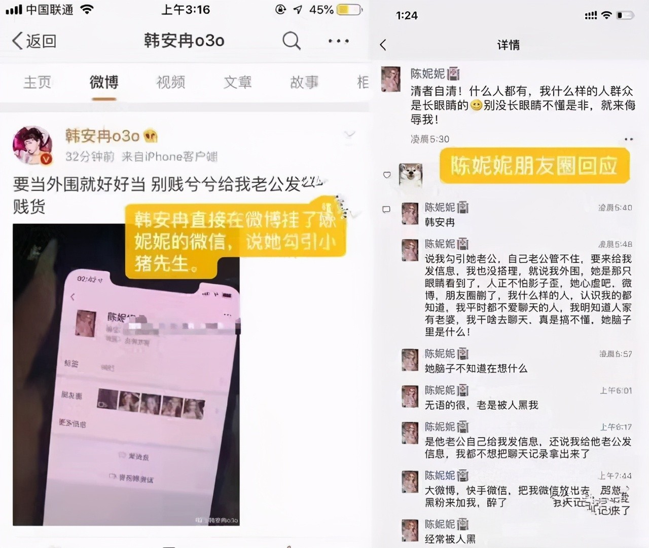 其实,两人的婚姻早已注定了结局,韩安冉曾发文控诉前夫与一位女网红关系十分暧昧,男方也发文公开道歉。