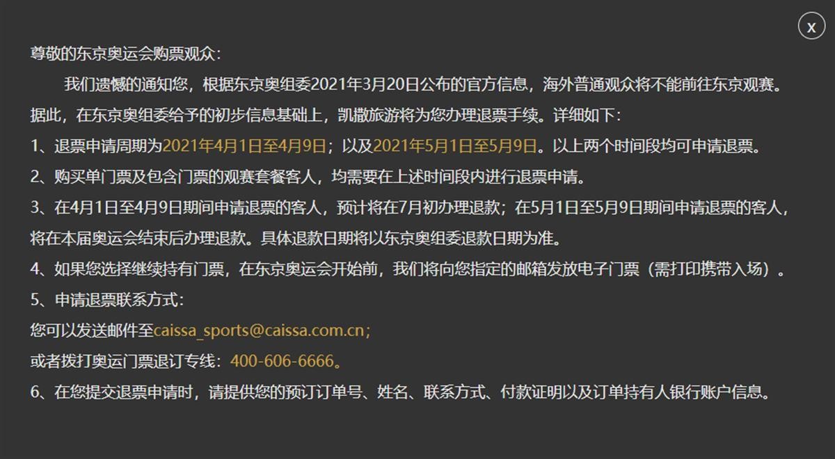 凯撒旅游的官网上至今仍有“东京奥运会”的项目