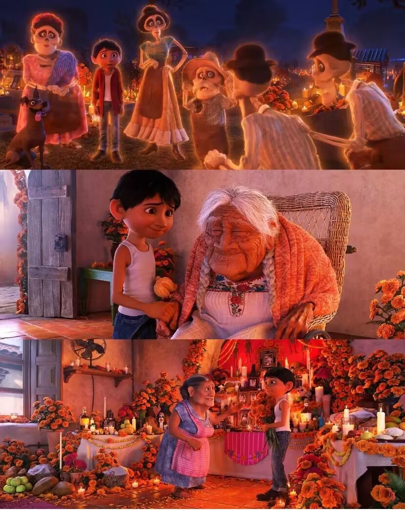 当眼泪夹杂着梦想和生死的感悟落下时,寻梦环游记也在一首歌颂死亡的歌中结束。电影以墨西哥传统节日亡灵节为背景,讲述了一个有关梦想和亲情的故事。主人公米格尔就像千千万万的追求梦想的我们,因为热爱不断追寻,而亲人们扮演着梦想的“阻挡者”。在梦想和亲人间,米格尔选择了梦想。而当他对音乐梦迷茫时,亲人毅然选择在背后支持着他,小男孩也在最后发现家人的重要。