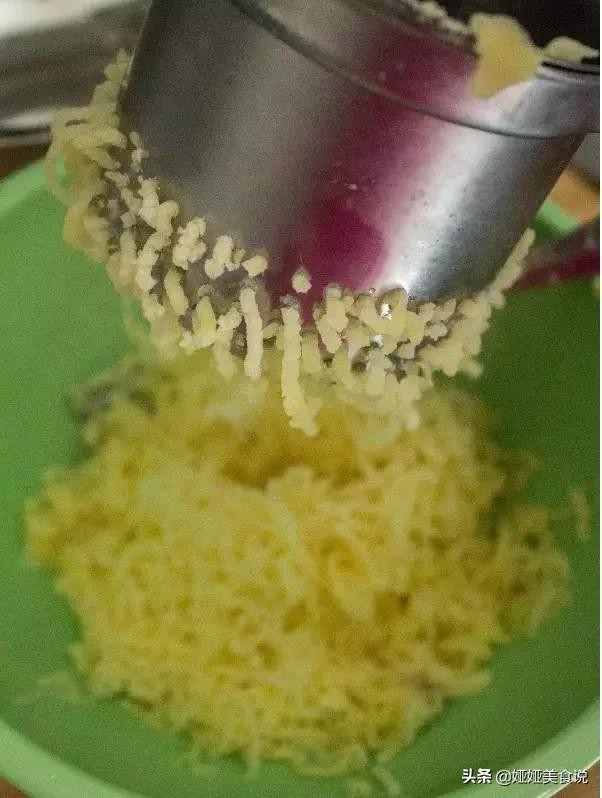 土豆蒸熟后,压成泥。